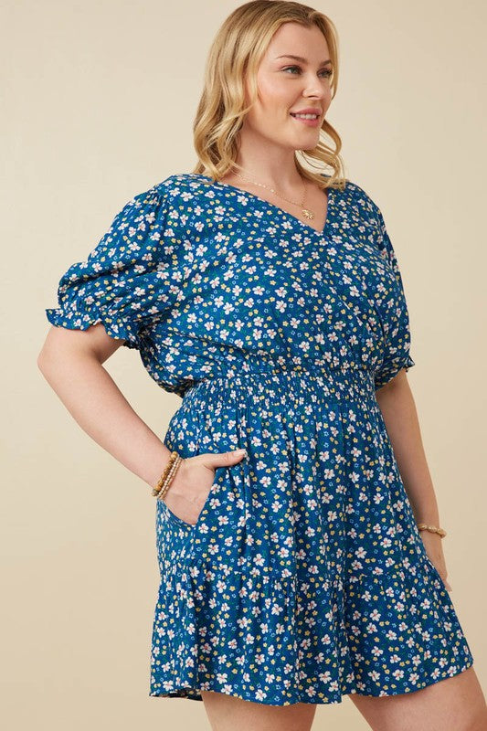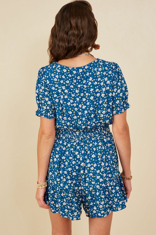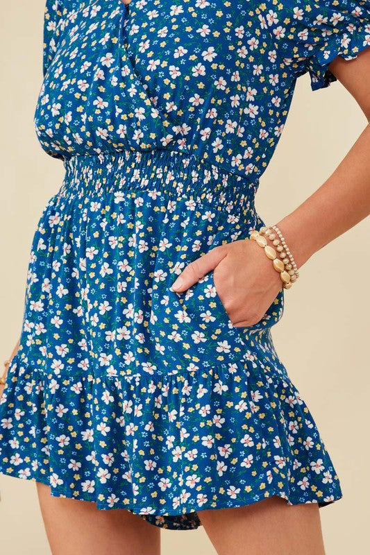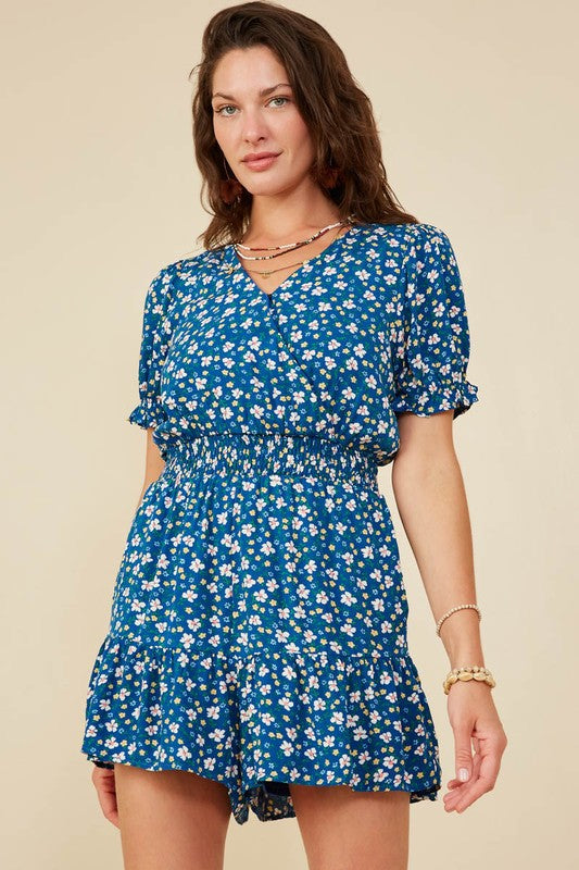 This playful romper features a vibrant floral print and a flattering V-cut neckline that adds a touch of charm. The smocked waist enhances your silhouette while providing comfortable stretch, making it perfect for sunny days and casual outings. Embrace effortless style with this fun and flirty playsuit.