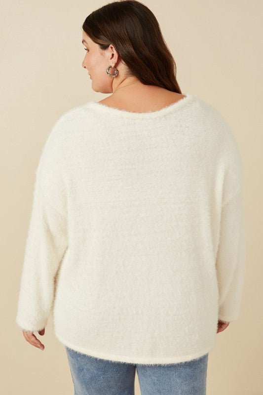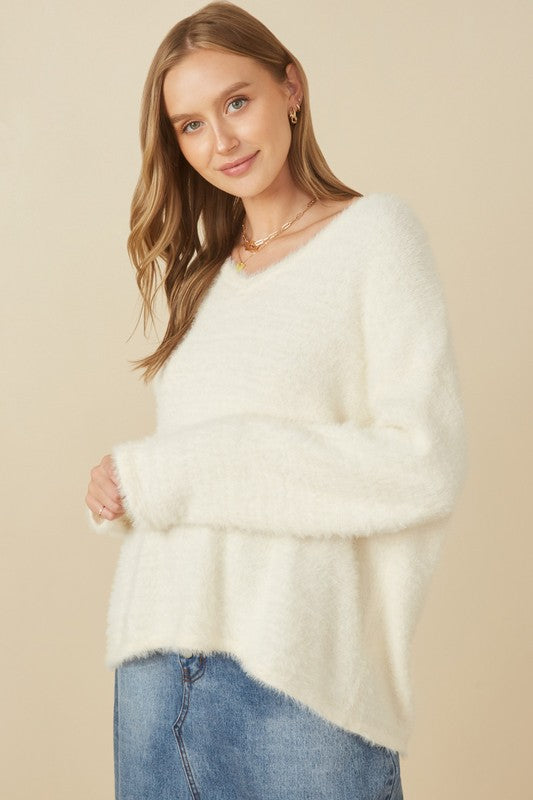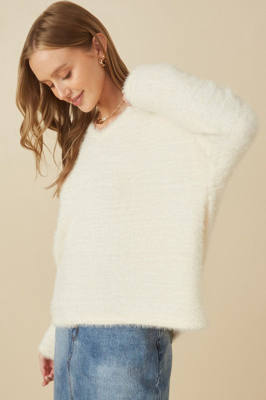 Experience cozy elegance with our Mohair V Neck Sweater Top. Crafted from soft mohair knit fabric, it offers warmth and a luxurious feel. The flattering V-cut neckline enhances your silhouette, while long sleeves provide comfortable coverage for cooler days. Perfect for layering or wearing on its own, this sweater combines style and comfort effortlessly.