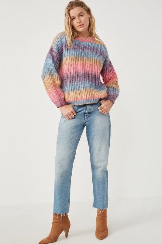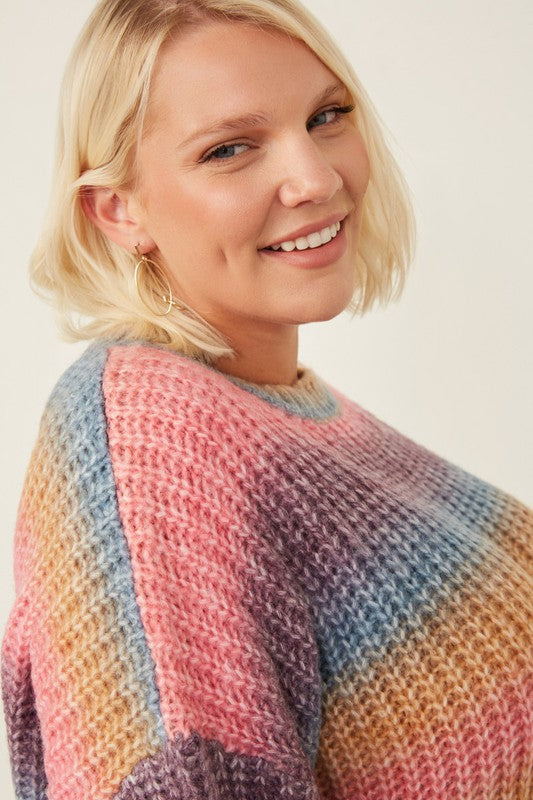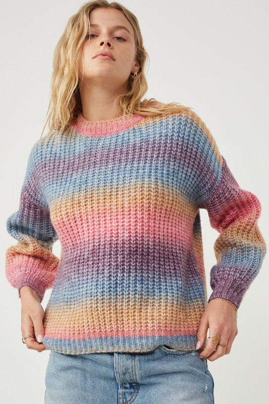 Stay cozy and stylish with this playful Ombre Chunky Knit Sweater. Featuring a soft ombre stripe pattern, a comfy round neckline, and long sleeves, it’s perfect for layering on chilly days or adding a pop of fun to your casual look. Embrace warmth with a splash of color!