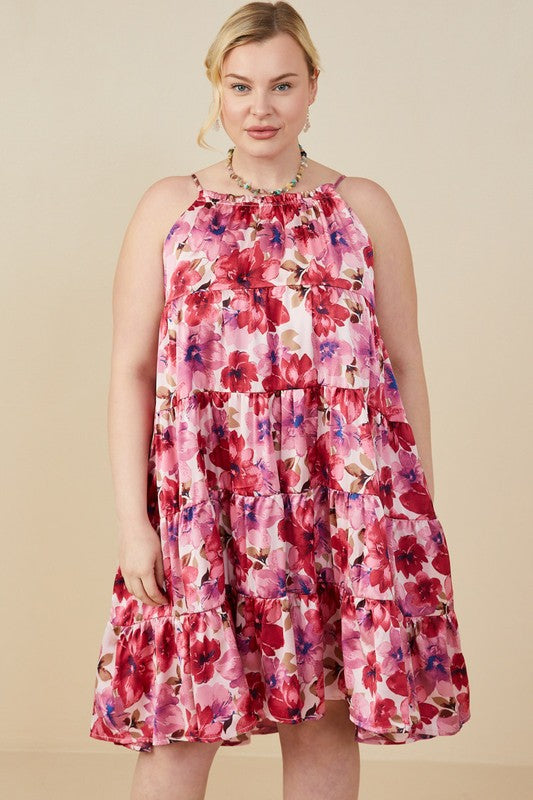 Satin Floral Tiered Dress