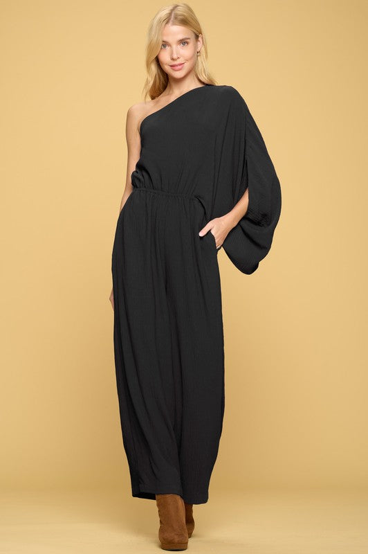 Woven One Shoulder Jumpsuit