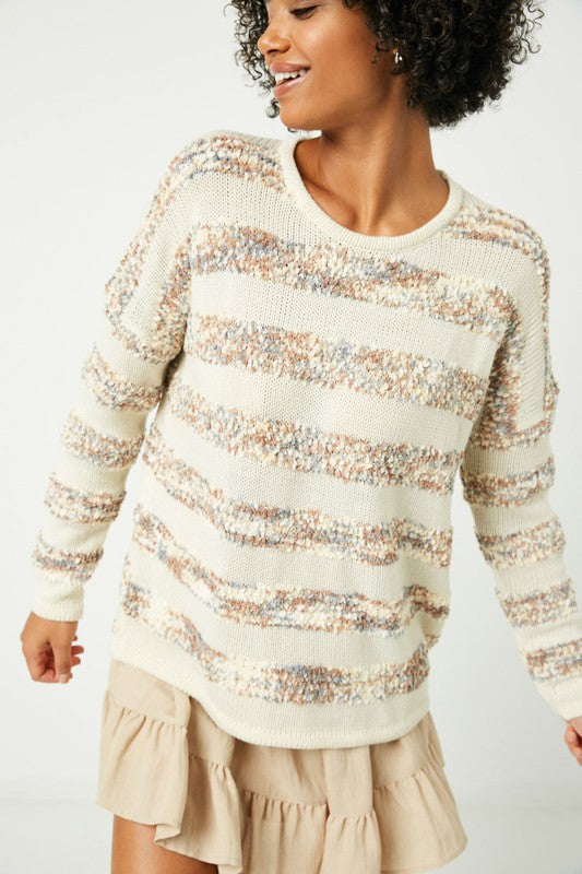 Popcorn Stripe Knit Sweater