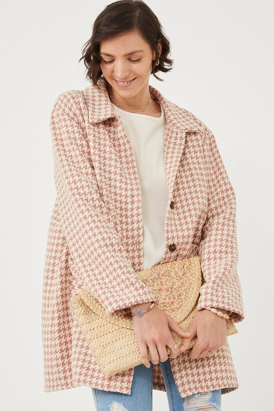 Houndstooth Button Soft Coat