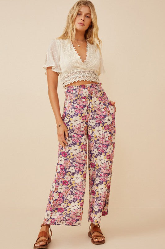 Floral Print Wide Leg Pants
