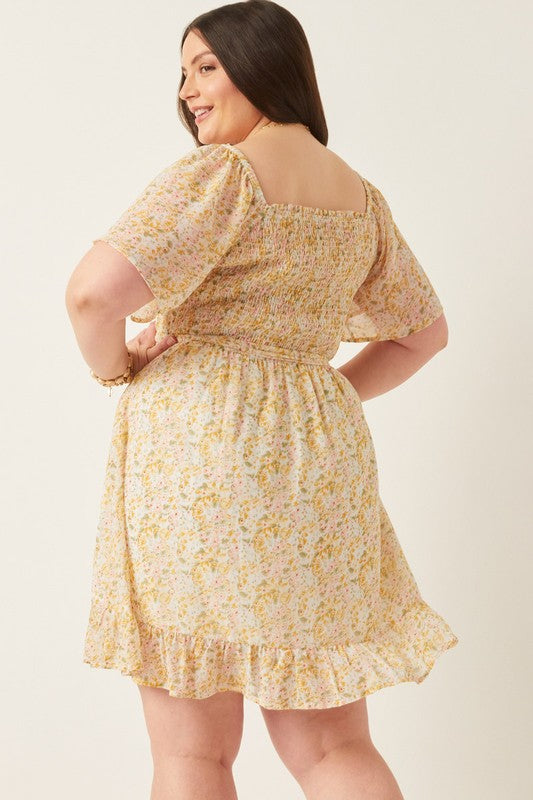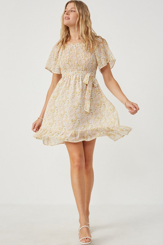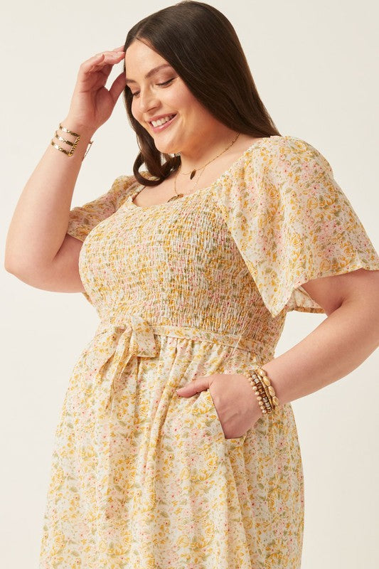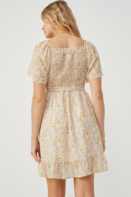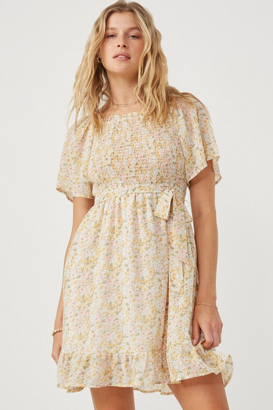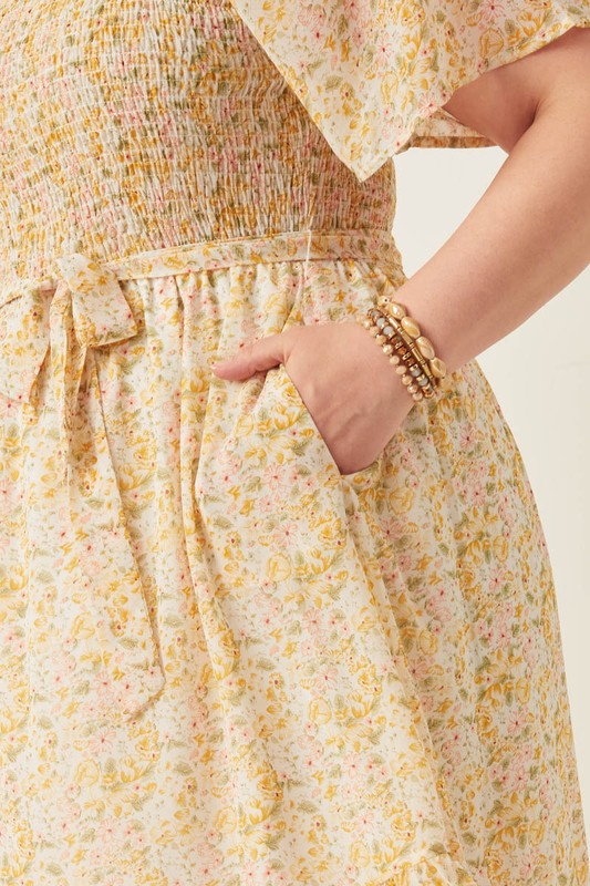 Elevate your wardrobe with this sophisticated Tulip Sleeve Belted Dress, crafted from delicate floral woven fabric. Featuring elegant smocked detailing and a flattering belted waist, it offers a refined silhouette that enhances your natural shape. Fully lined for comfort and a smooth finish, this dress is perfect for any occasion where grace and style are paramount.