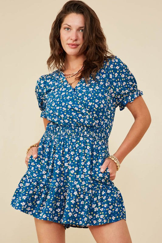 This playful romper features a vibrant floral print and a flattering V-cut neckline that adds a touch of charm. The smocked waist enhances your silhouette while providing comfortable stretch, making it perfect for sunny days and casual outings. Embrace effortless style with this fun and flirty playsuit.