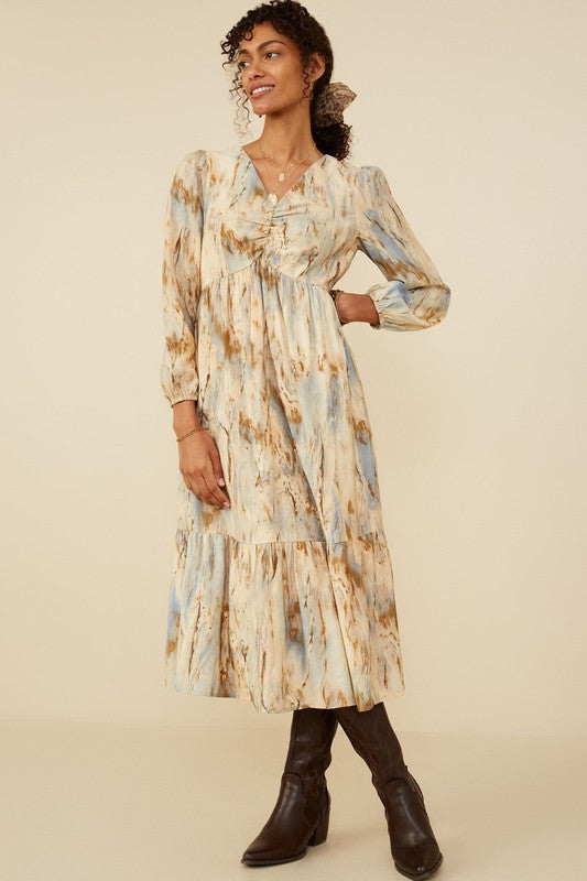 Oil Print Long Sleeve Dress
