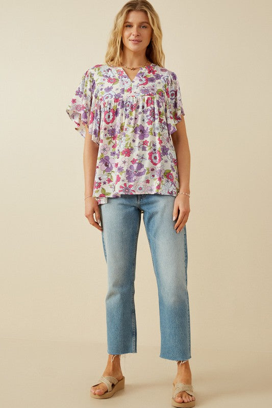 Retro Floral Flutter Top